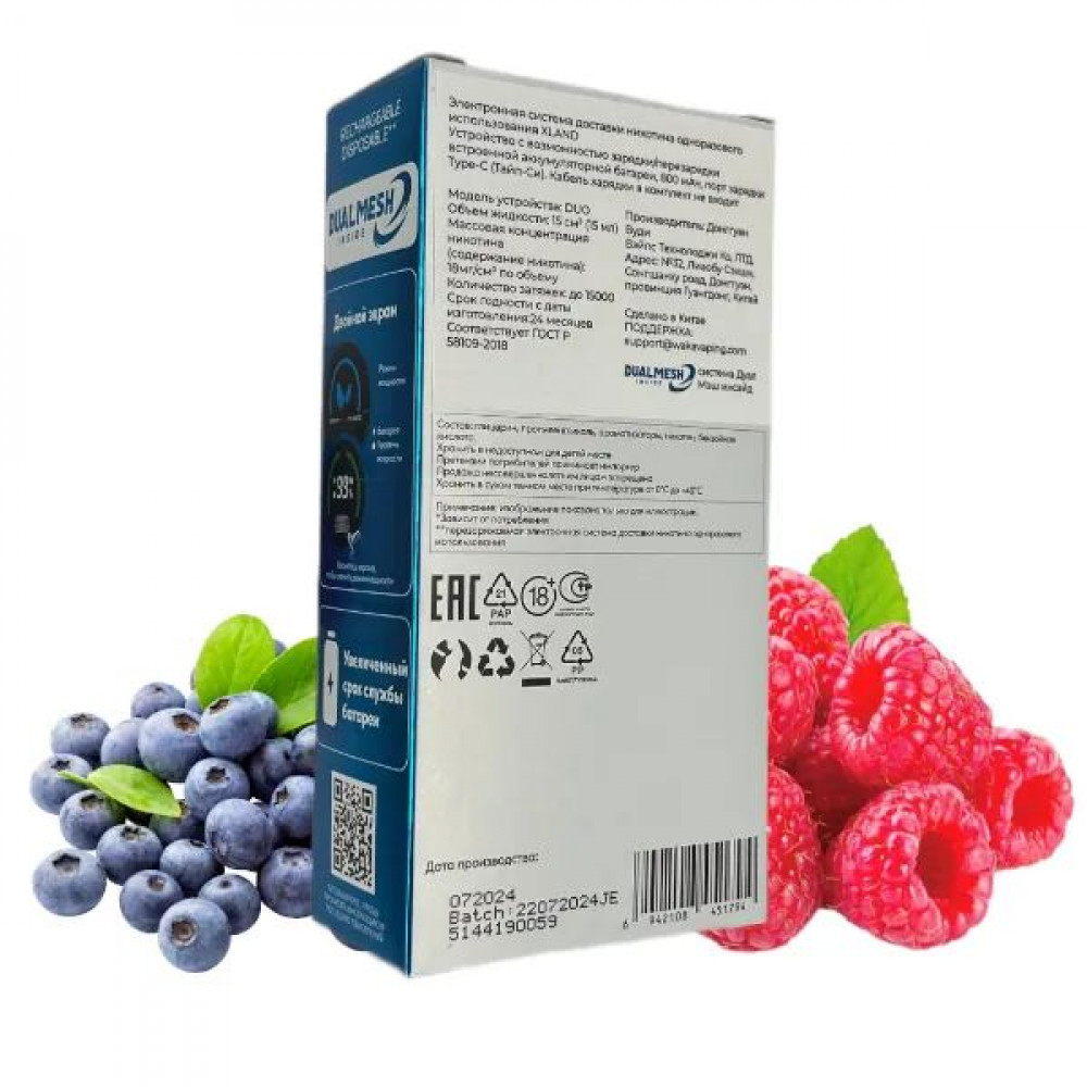 Технические характеристики WAKA XLAND 15000 - Черника Малина